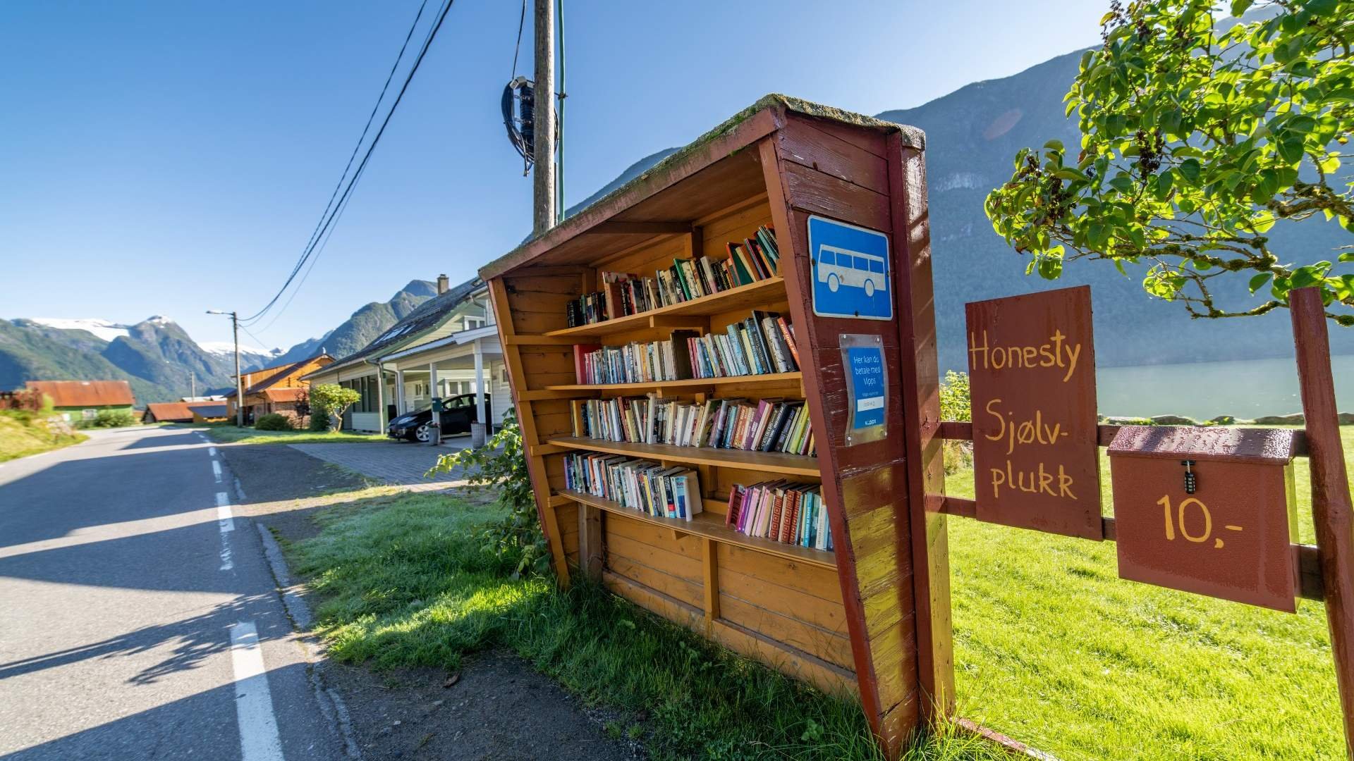 Bøker på kaia, bokhyller på busstopp, bokkaféar – og til og med eit bokhotell! I tillegg kjem alle bruktbutikkane fulle av bøker på ulike språk, og dei spanande litteraturarrangementa og festivalane. Dette er berre eitt av mange gode grunnar til å leggja turen til Fjærland neste gong du vitjar Vestlandet.